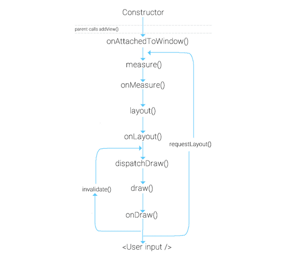 onMeasure()부터 다시 뷰를 그립니다. 뷰의 사이즈가 변경될 때 그것을 다시 재측정해야 하기에 lifecycle을 onMeasure()부터 순회하면서 뷰를 그립니다.