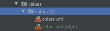 물론, Color Theming에서 지원해 주는 컬러 속성도 색상이 고정이기 때문에 별도로 다크 테마에 적용되는 리소스인 values-night에서 컬러를 지정하여 개발할 수도 있습니다.