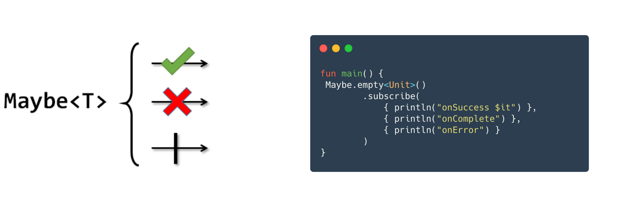 maybe 는 0개 혹은 1개의 데이터를 전달하는 생산자입니다. Single 클래스에 Oncomplete 이벤트가 추가된 형태라고 보면 됩니다.