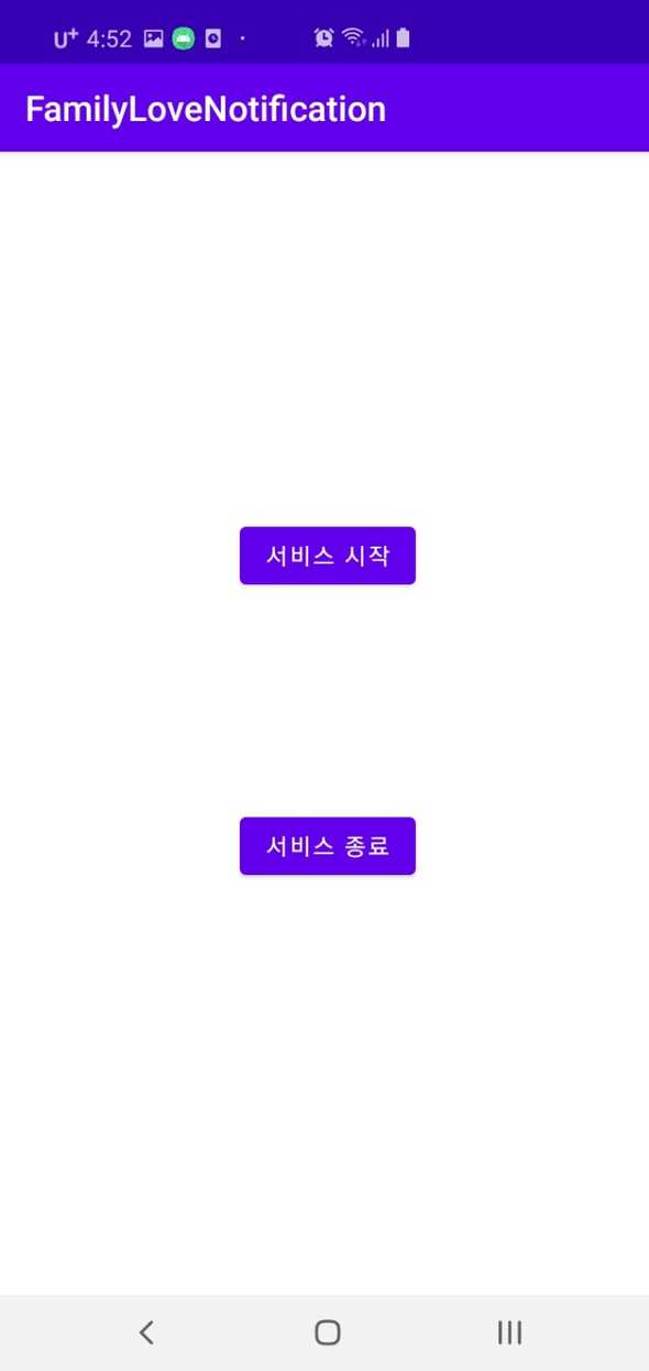 simple too startButton.setOnClickListener { this.startForegroundService(Intent(this, LockScreenService::class.java)) } completeButton.setOnClickListener { this.stopService(Intent(this, LockScreenService::class.java)) }버튼으로 서비스를 시작하거나 멈출 수 있게 만들었을 뿐입니다.