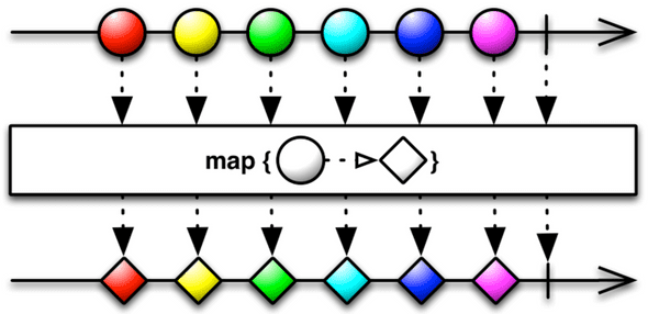 >> map() 함수의 마블 다이어그램- 앞서 말했던 중개업자는 마블 다이어그램의 map{} 사이에 있습니다.