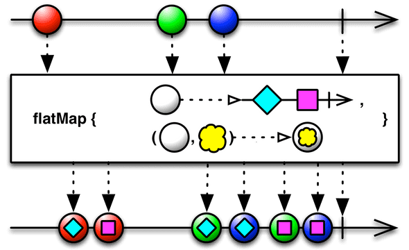 RxComputationThreadPool-6 | 358 | value = 1<> RxComputationThreadPool-7 | 459 | value = 3<> RxComputationThreadPool-6 | 559 | value = 1<> RxComputationThreadPool-6 | 559 | value = 5<> RxComputationThreadPool-7 | 659 | value = 3<> RxComputationThreadPool-8 | 755 | value = 5<>concatMap 다이어그램