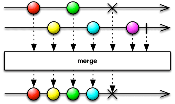 merge() 함수는 전달된 개별 Observable 중 하나 merge가 onError알림 과 함께 종료되는 경우 merge자체 생성 된 Observable 이 onError알림 과 함께 즉시 종료됩니다.