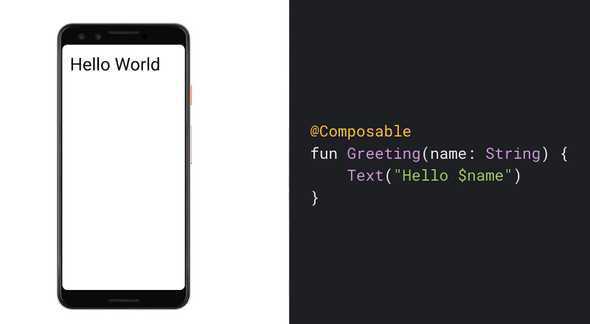 @Composable주석을 추가합니다.개발자가 XML 레이아웃을 수정하거나 UI 위젯을 직접 만들지 않습니다. 대신 Jetpack Compose 함수를 호출하여 원하는 요소를 말하면 Compose 컴파일러에서 나머지 작업을 완료합니다.