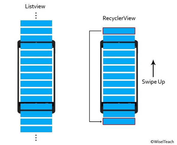 RecyclerView 위젯은 ListView가 더 진보하고 유연해진 버전입니다.