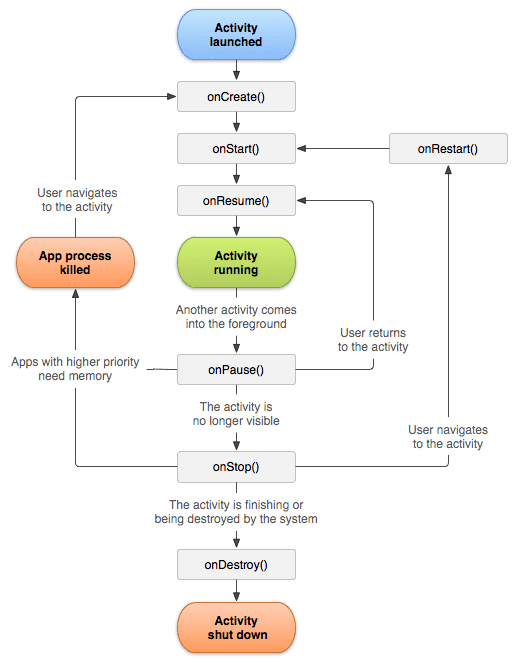 Activity는 위 그림과 같이 상태에 따른 콜백 메소드를 가지고 있습니다.