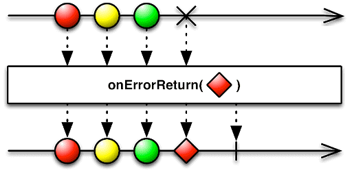 onErrorReturn() 함수와 비슷한 함수로 Throwable 객체를 인자로 전달하지 않기 때문에 코드는 좀 더 간결해집니다. 단, 예외의 종류는 확인할 수 없습니다.