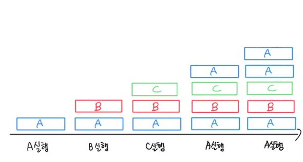 A가 singleTop으로 선언되었을 경우, 나머지는 기본 값