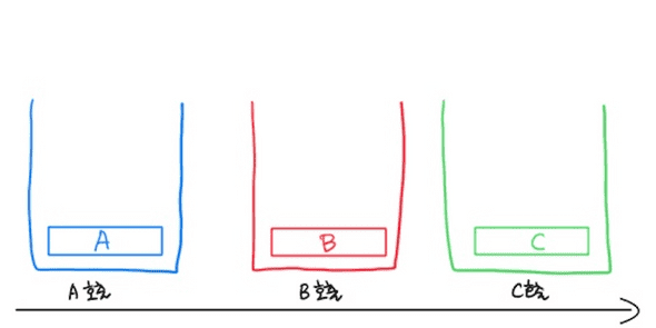 A, B, C가 모두 singleInstance로 선언되었을 경우