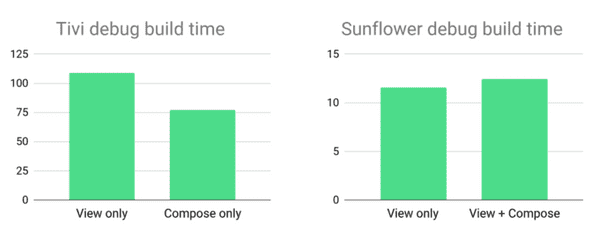 위 결과를 보면 아시겠지만 오직 기존의 View System 만 적용한 케이스보다는 Compose 만 적용한 케이스가 빌드 속도나 앱 용량 측면에서 더 좋은 결과를 가져왔고요. 반면에 기존의 View System 과 Compose 를 혼용한 경우에는 반대로 기존의 View System 보다 부족한 결과를 보이고 있습니다.