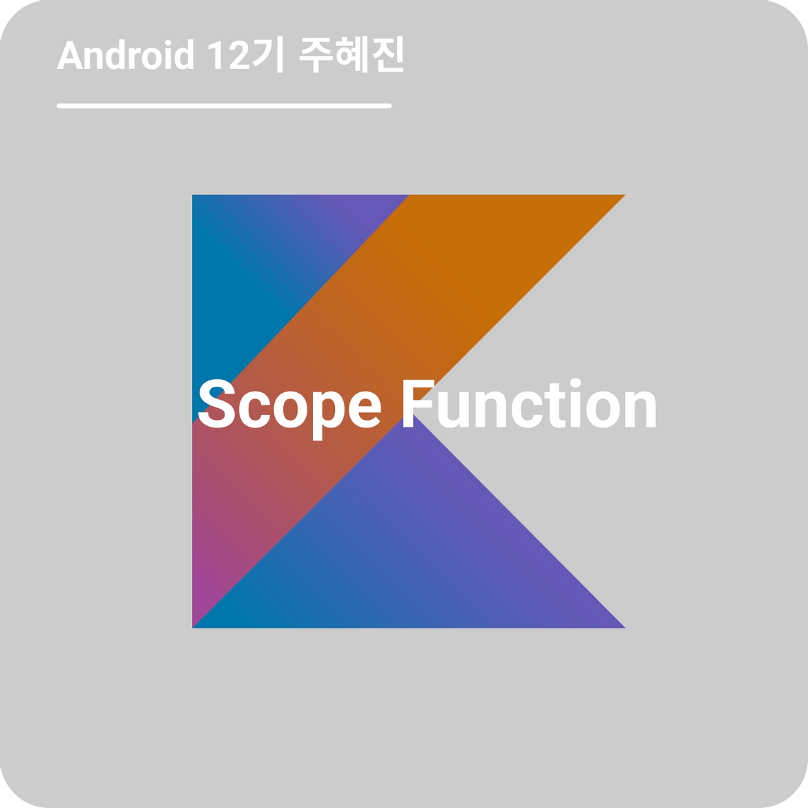 안녕하세요 안드로이드 12기 주혜진입니다~ 회사에서 리뷰 받을 때 주로 제가 스코프 함수를 잘못? 사용해서 권장되는 사용법을 알려주시는 코멘트를 많이 받았었는데요~ 그래서 요번 블로그 주제로 스코프 함수로 정해봤습니다! 이전에 스코프 함수 글이 있긴 하지만! 저는 공식문서를 번역하면서 공부한 글이라 쉽게 쓱 읽기 좋을 것 같아요! 그럼 본론으로 고고!