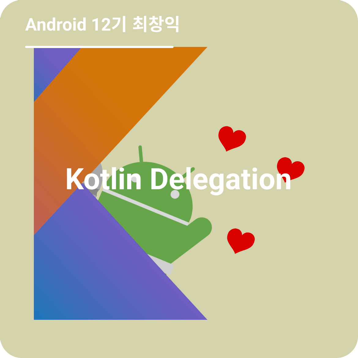 다른 언어들에 비해 코틀린이 제공해주는 독특한 기능이 있는데요. 바로 델리게이션입니다. 델리게이션을 지칭하는 위임 패턴은 이미 전통적인 디자인 패턴 중 하나이지만, 코틀린은 이러한 위임 패턴을 아주 간단히 구현할 수 있게 만들어, 언어 차원에서 위임 패턴 사용을 적극 권장하고 있습니다. 안드로이드 개발에서도 by lazy, by remember 등의 위임 패턴을 이미 많이 사용하는데요. 오늘은 코틀린 델리게이션에 대해 간단히 알아보는 시간을 가져볼까 합니다.