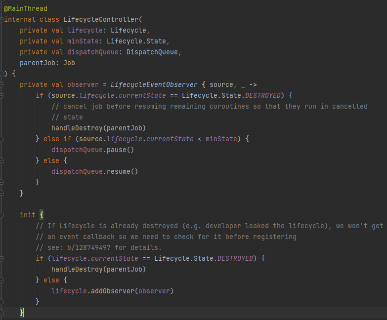 먼저 lifecycleScope는 Android Developer를 보면, LifeCycle이 DESTROYED일 때 장기적인 job을 자동으로 취소해준다고 되어있습니다. 그런데 취소해주는 것과 별개로, 특정 상황에서 시작해야 할 때는 어떻게 할까요? 또한 작업을 특정 Lifecycle의 State에서 반복하고 싶다면 어떻게 해야 할까요?